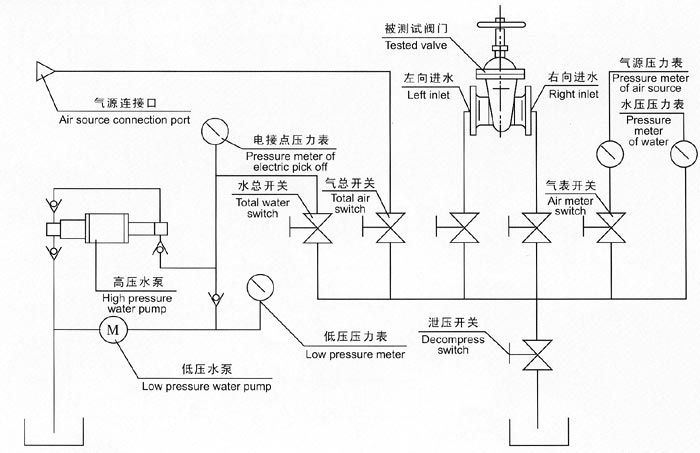 四、試驗的介質:水具有方便,不污染環境等優點,因而應用廣泛,要確保對被試閥門不會腐蝕及在測試機介質要求所需要。在水箱中,添加防銹劑或者常用油作試驗介質。