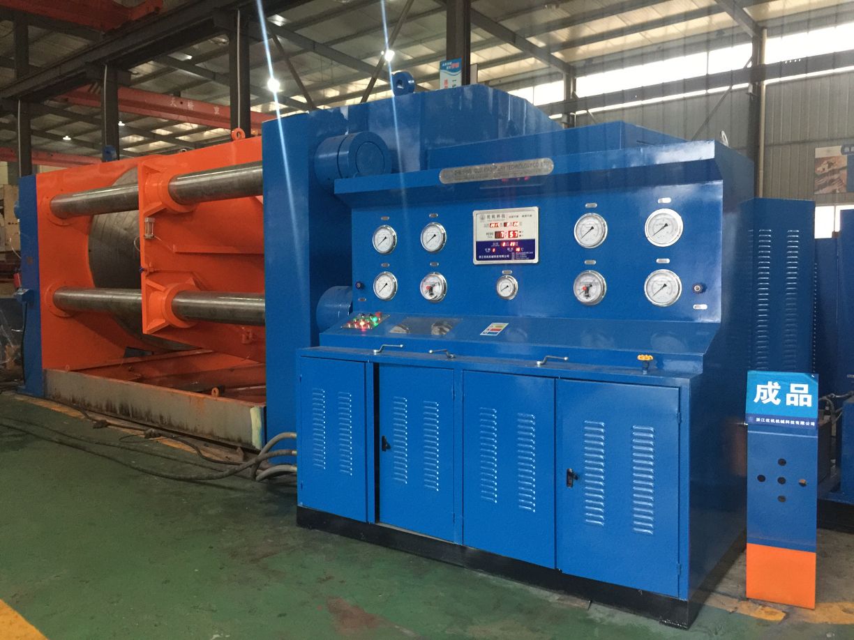 采用了卸荷保壓回路設計。有效地控制了連續開機條件下液壓油的溫升,節 省了試驗過程的能耗并提高了液壓密封元件(進口聚氨酯)的壽命。液壓站與主機在結構上連接在一起(管路刷洗鍍鋅處理),結構緊湊。試驗所需液壓系統的壓力可通過操作控制臺上的遠程調壓閥配合增壓系統來設定。所有試驗中執行機構的動作操縱和加壓介質的控制均可在 操作面板上通過按鈕(施耐德)和閥門(特制高壓閥)組來實現。設計參數保證了動作執行的靈敏度和位置精確性。液壓控制系統的零部件均采用“上海華島液壓件,油泵電機采用(西門子電機)